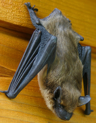 The Big Brown Bat (Eptesicus fuscus) is native to Maryland and can be found throughout the United States except for the State of Florida. These bats are one of Maryland's most common along with the Little brown bat. They are often found roosting in caves, forests, and hollow trees. Although, it is more common for them to be found in man made structures such as attics, churches, apartment complexes, warehouses and other buildings of Annapolis, MD. They are a medium sized bat with a weight of 1/2 - 5/8 oz, length of 4-5 inches and an average wing span of 11-13 inches. They have long dark brown glossy fur, with a black muzzle, ears and wings. These bats are not an endangered federally protected bat, although they are still just as beneficial to the environment.